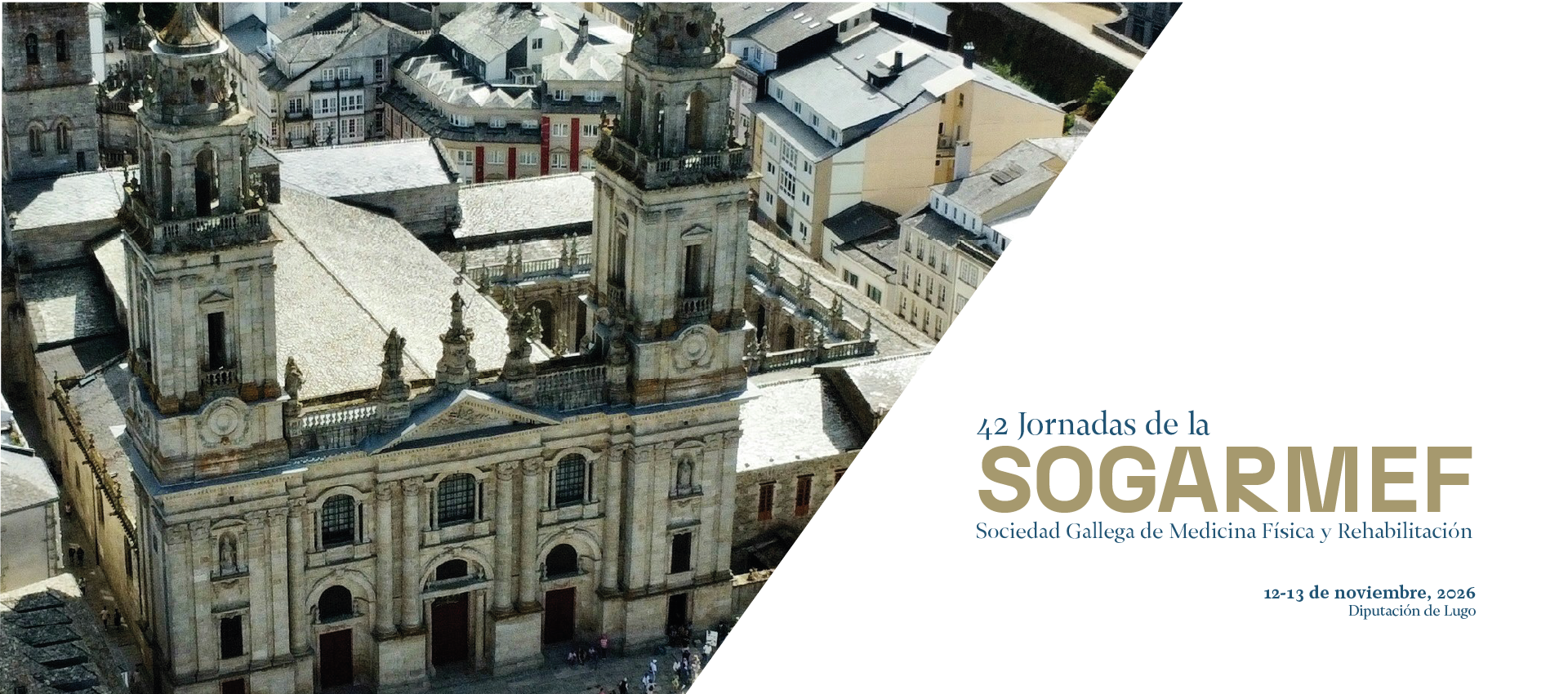 Este año 2026 nos complace organizar las 42 Jornadas de la Sociedad Gallega de Rehabilitación y Medicina Física (SOGARMEF) en Lugo, que se celebrarán los días 12 y 13 Noviembre en el Palacio de la Diputación.